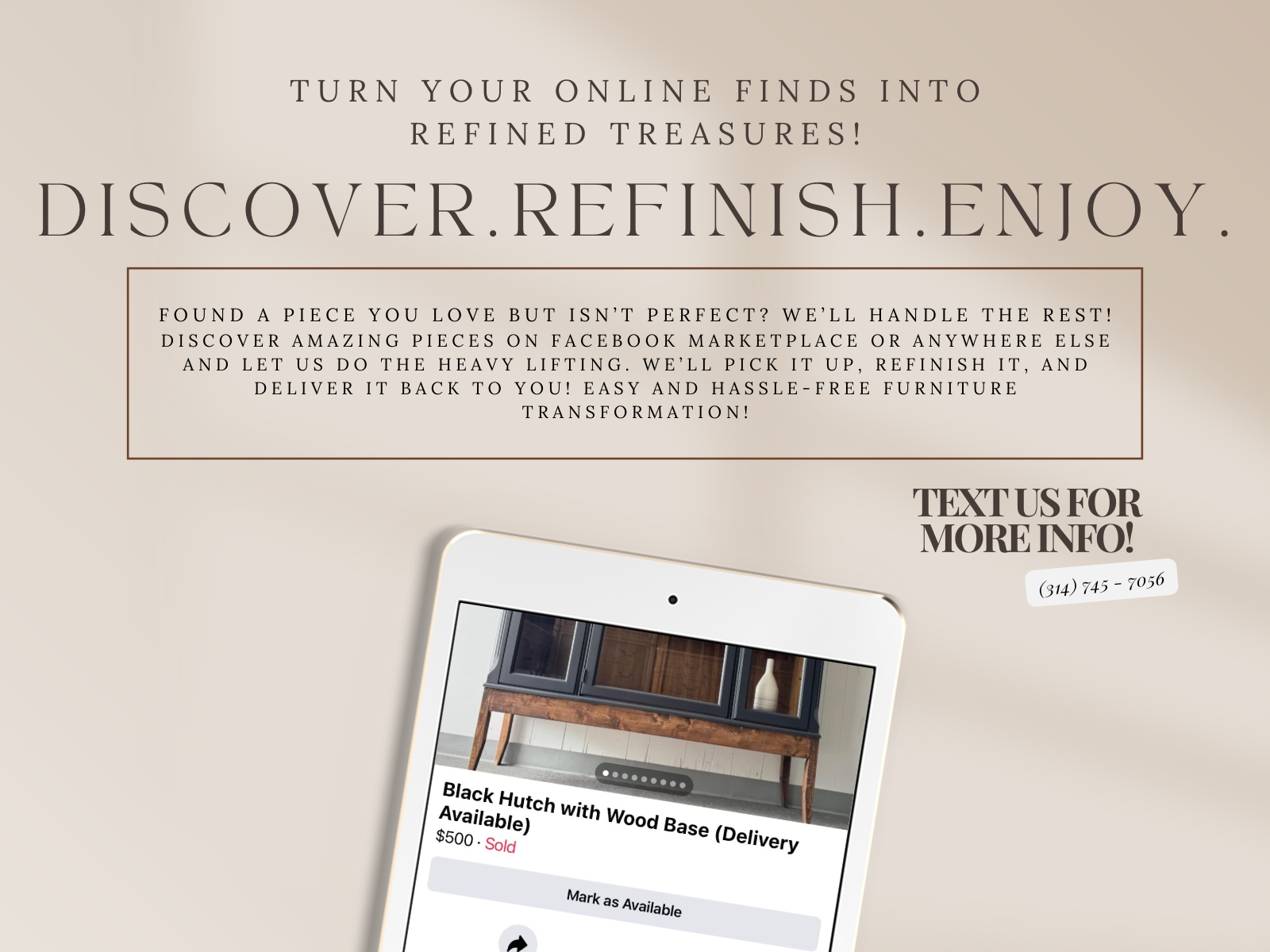 Transform your furniture with expert refinishing! Simply click below to request a fast personalized quote and breathe new life into your beloved pieces. You’re also welcome to come visit us to check out our work in person.